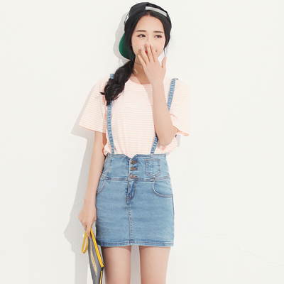点此购买【白菜28】学院风高腰背带牛仔短裙,卷后38,领券: