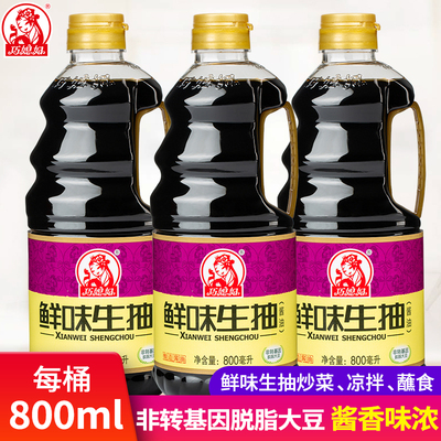 【白菜40】巧媳妇鲜味生抽800ml*3,券后15.9元包邮