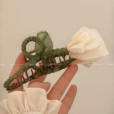【白菜13】郁金香花朵交叉抓夹,券后14.9元包邮:点我领券 ,是合金材质的,上面的郁金香造型是网纱布艺的!更加灵动好看