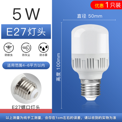 【白菜82】LED螺口节能灯头5W,券后1.9元包邮