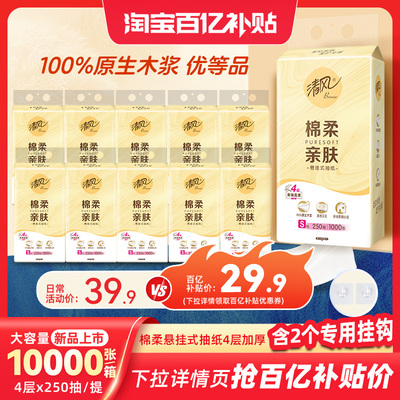 【白菜33】清风.悬挂式抽纸1000张×10提 ,一单补贴10块29.9垝 ,大尺寸:132×170mm