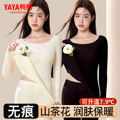 【白菜5】鸭鸭 女士保暖内衣/套装可选 ,拍上衣19.9元上下/套39.9元,无痕山茶花,亲肤润肤又保暖